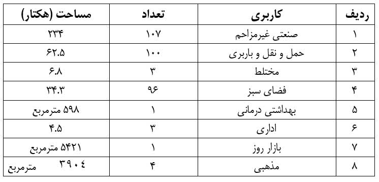 وضعیت کاربری های موجود در ناحیه صنعتی امیرکبیر
